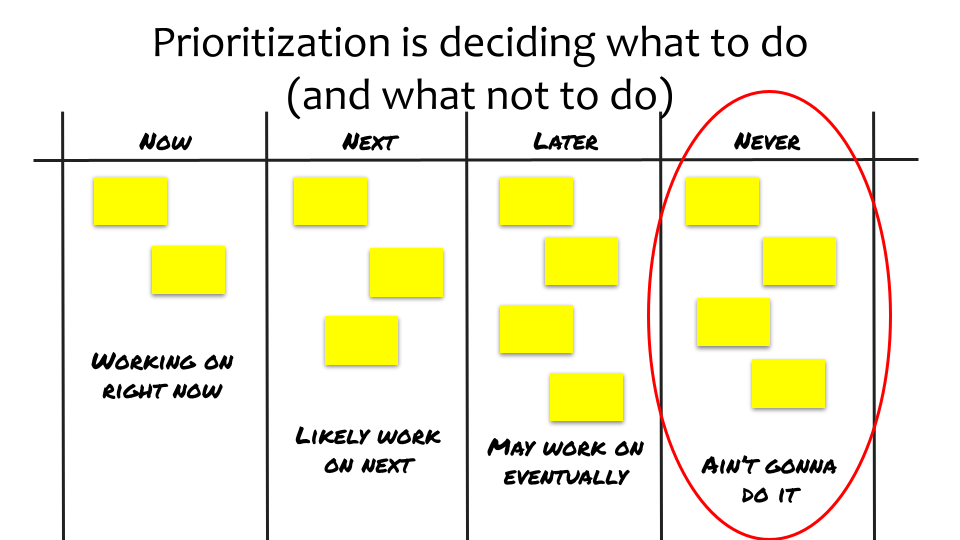 This question is in response to my suggestions to prioritize in your roadmap and to not go into detail until you absolutely have to.